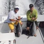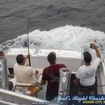 As happens so often in the game of Offshore Fishing things change and a Charter Captain worth his salt must adjust and be prepared for everything. The Tuna bite has changed somewhat and the all out blitzes of bigger fish has turned into a lot of little fish to sort through to get to the bigger fish. Also a few new game changers have entered the fray, That’s Right has had a few shots this past week at some Big Eye Tuna unfortunately when your primary target is yellowfin tuna in the 75 to 80lb class and big eye of 250plus pounds decide to show up you can quickly be out gunned on 100lb leaders. This happened yesterday and we came unbuttoned on two nice Big Eye.